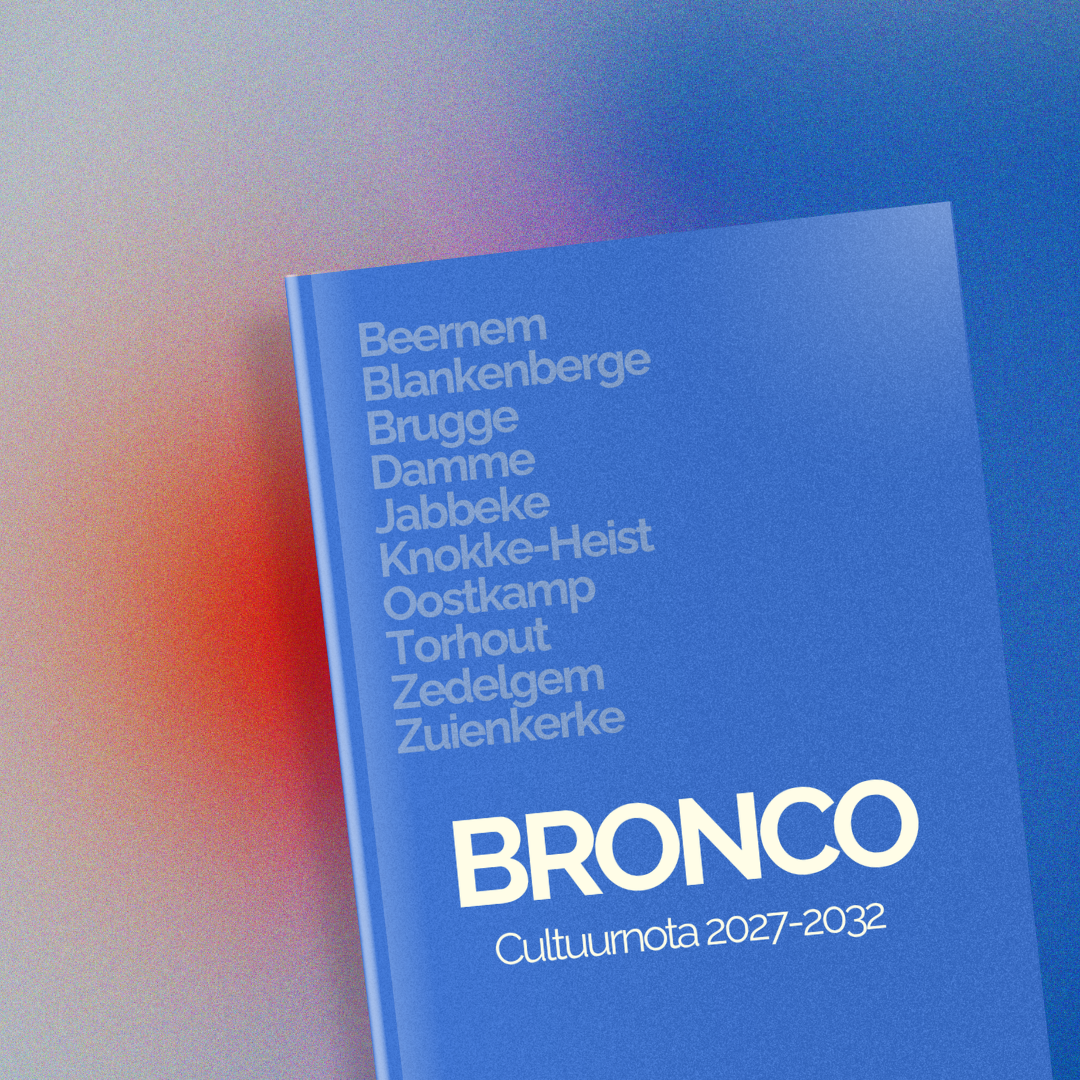 BRONCO is het nieuwe intergemeentelijk samenwerkingsverband voor bovenlokale cultuurwerking in regio Brugge. Samen tien gemeentes en steden sterk, bundelen we de krachten in een constructief platform dat cultuurmakers in onze regio stevig in het zadel wil zetten.